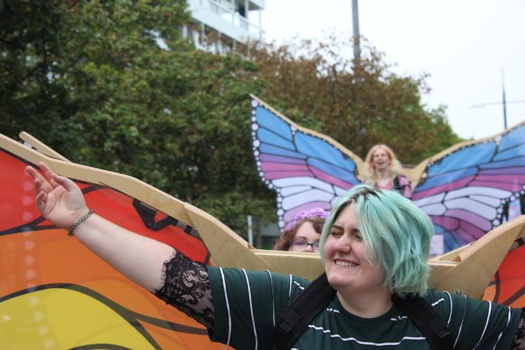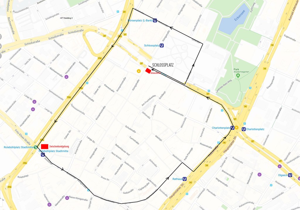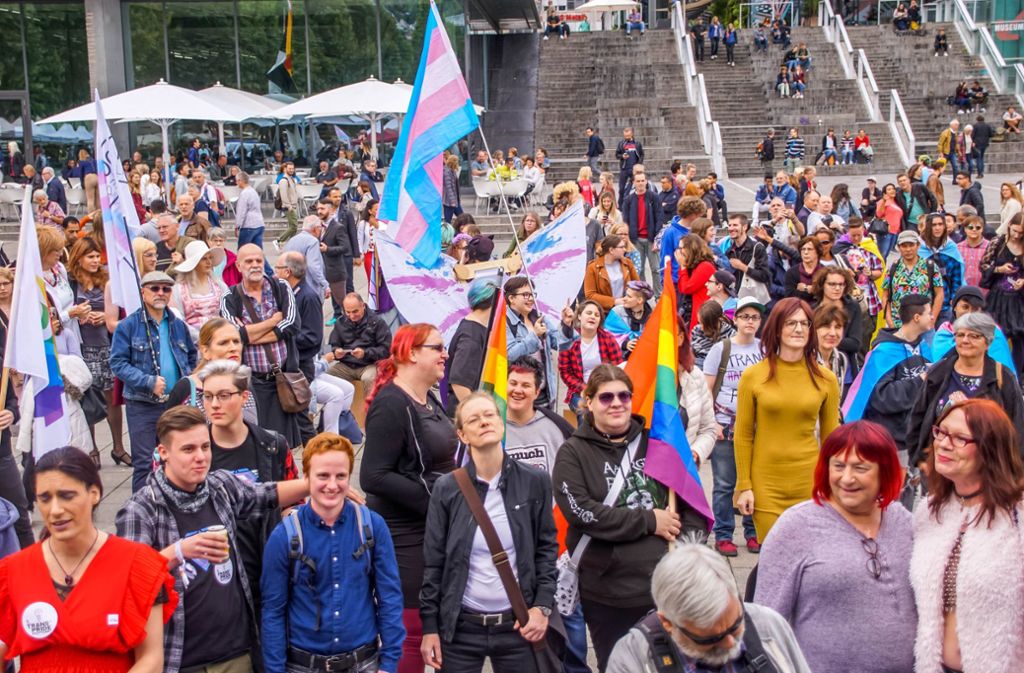 Der lokale Trans Pride startete mit einer etwa einstündigen Parade queer durch Stuttgart. Die Gruppe von etwa 350 Menschen startete am Schlossplatz und lief überdie Theodor-Heuss-Straße zum Rothebühlplatz. Von dort aus ging der Zug zurück zum Schlossplatz via der Hauptstätter Straße.