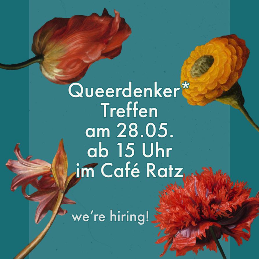 Hallo liebe Queerdenker*innen, Am 28.05. ab 15 Uhr im Café Ratz ist wieder Queerdenker*Treffen! Neben dem üblichen Cafébetrieb, den Snacks, den Boardgames und der casual Hof-Chillerei haben wir dieses Mal etwas Besonderes vor. Wir würden die Organisation der Treffen gerne an ein neues Team weitergeben, das neue Ideen und eigene Vorstellungen umsetzen will! Dafür bieten […]